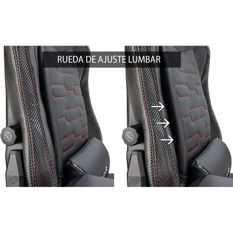 Silla gaming profesional Konda Carbon Edition.Vive la experiencia de juegos más profesional, con los materiales de más alta calidad y los acabados en fibra de carbono. Konda es el sueño de cualquier Gamer donde se ha unido los elementos más avanzados en comodidad y ergonomía.Dispones de rueda de ajuste lumbar, reposabrazos 4D, ruedas de poliuretano, cojín lumbar y cervical, base de 5 radios de acero y detalles en fibra de carbono.