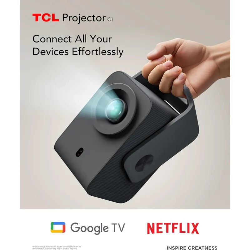 Proyector Portátil TCL C1 Full HD con l130 lúmenes , licencia oficial de Netflix , para recrear una pantalla de 120 pulgadas Wifi , USB  y un conector HDMI.
