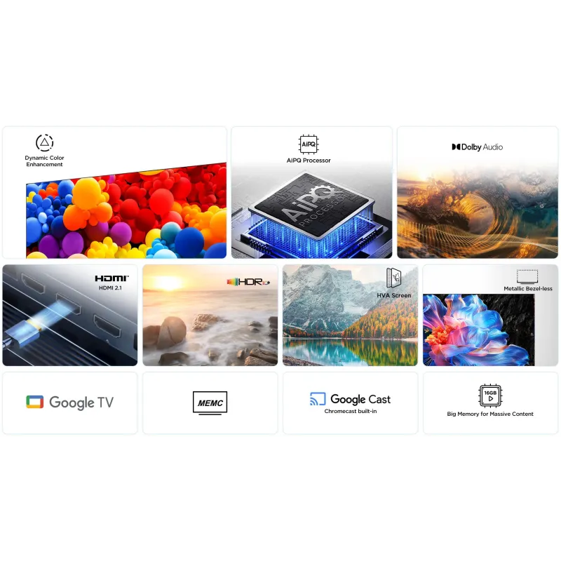 - Tecnología de procesamiento de imagen: TCL AiPQ Processor