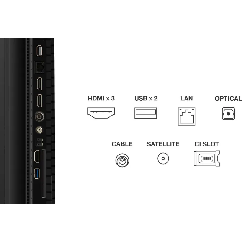 El Televisor TCL 65P7K presenta un diseño sin marco que maximiza la superficie de visualización y se adapta perfectamente a cualquier entorno. Su estructura metálica y base de patas le otorgan estabilidad y un aspecto elegante. En cuanto a conectividad, incluye tres puertos HDMI 2.1, dos puertos USB (uno 2.0 y uno 3.2 Gen 1), salida óptica de audio, entrada Ethernet y compatibilidad con T-Link (CEC). También dispone de interfaz común CI+ 1.4 y compatibilidad con múltiples formatos de señal digital y analógica. Este conjunto de características facilita la conexión de múltiples dispositivos y asegura una integración perfecta con tu ecosistema tecnológico.o