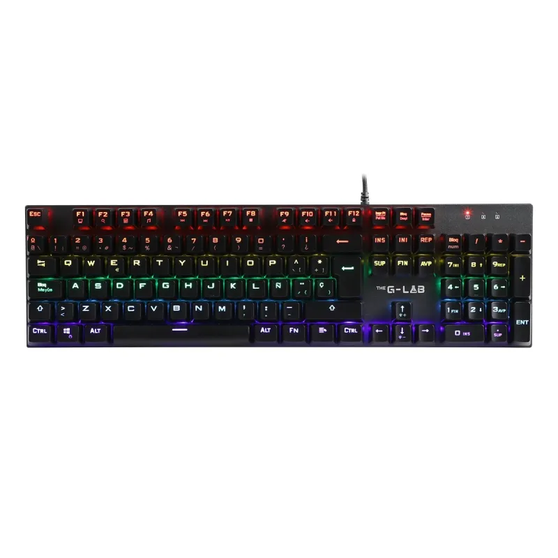 Con retroiluminación LED multicolor ajustable, el Teclado The G-lab Keyz Carbon EX permite adaptar el entorno visual a tus preferencias. Puedes elegir entre luz roja, verde o azul, lo que mejora la visibilidad en entornos oscuros y añade un toque estético a tu espacio de juego. Esta funcionalidad no solo es visualmente atractiva, sino también práctica, ya que facilita el uso nocturno sin necesidad de luz adicional. Además, los indicadores LED y la posibilidad de ajustar la altura del teclado mejoran aún más la comodidad y la eficiencia durante el uso prolongado. Es una característica especialmente valorada por quienes buscan un rendimiento óptimo sin renunciar al estilo.