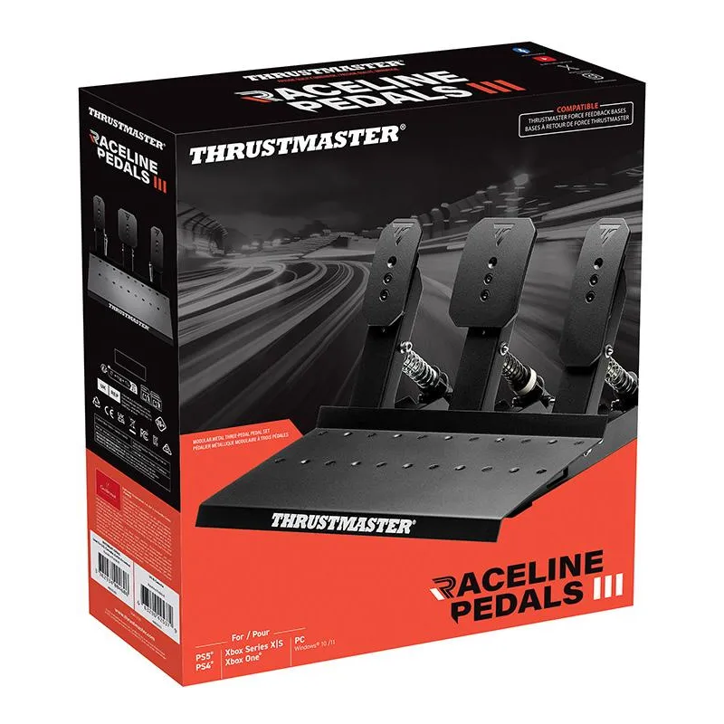 COMPATIBILIDAD: Raceline Pedals III es compatible con todos los volantes de carreras Thrustmaster Force Feedback (excluyendo T500) en PS5, PS4, Xbox y PC (Windows 10/11).