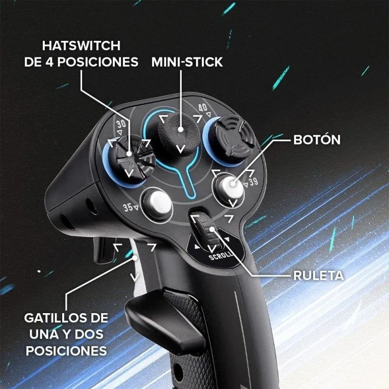 Con sus 21 botones programables, la Palanca de vuelo Thrustmaster Sol-R 3 AVA Add-On Grip permite una personalización completa según las preferencias del usuario. Esta funcionalidad es ideal para quienes desean configurar accesos directos específicos o funciones avanzadas en su simulador. El joystick analógico facilita un control intuitivo y preciso, mientras que la retroiluminación LED mejora la visibilidad de los comandos en cualquier condición de luz. El conector USB tipo C no solo proporciona una conexión segura, sino que también permite una instalación rápida y sin complicaciones. Esta palanca de vuelo es perfecta tanto para principiantes como para pilotos virtuales experimentados que buscan mejorar su rendimiento en cada sesión.