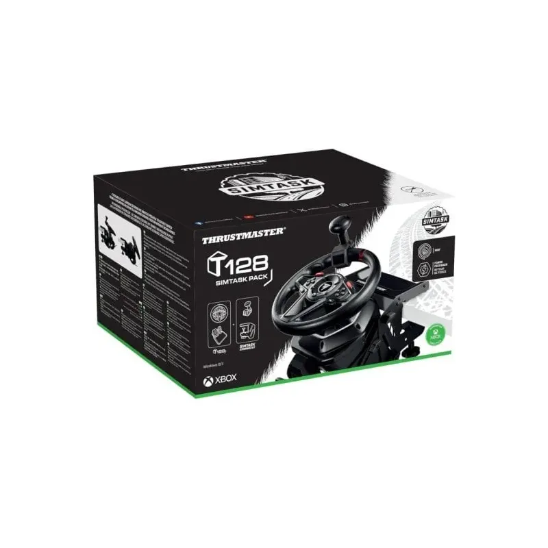 El Thrustmaster T128-P SimTask Pack es un pack de simulación con volante, pedales T2PM y soporte SimTask Steering Kit. La idea es clara: postura más horizontal para camión/maquinaria, ajuste rápido en escritorio y opción de conducir a una mano con pomo giratorio. Si juegas en PS5/PS4 y también tocas PC, esta variante te mantiene en el carril correcto.