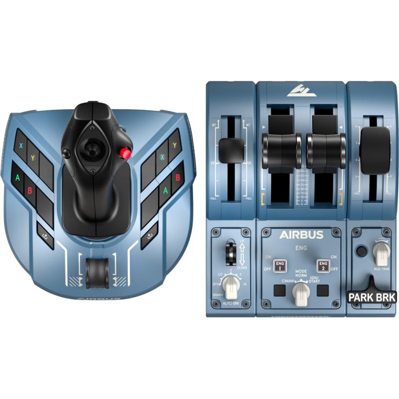CONTENIDO DE LA CAJA: 1 x TCA Sidestick X Airbus Edition, 1 x TCA Quadrant Airbus Edition + 2 módulos adicionales: flaps y freno de velocidad, 4 módulos de botones de cabeza de joystick intercambiables, 1 cable USB (Tipo-C a Tipo-A) + 2 cables SATA de Thrustmaster, 4 conectores + 1 varilla de fijación, 2 pegatinas, manual de usuario, guía de inicio rápido, información de garantía.