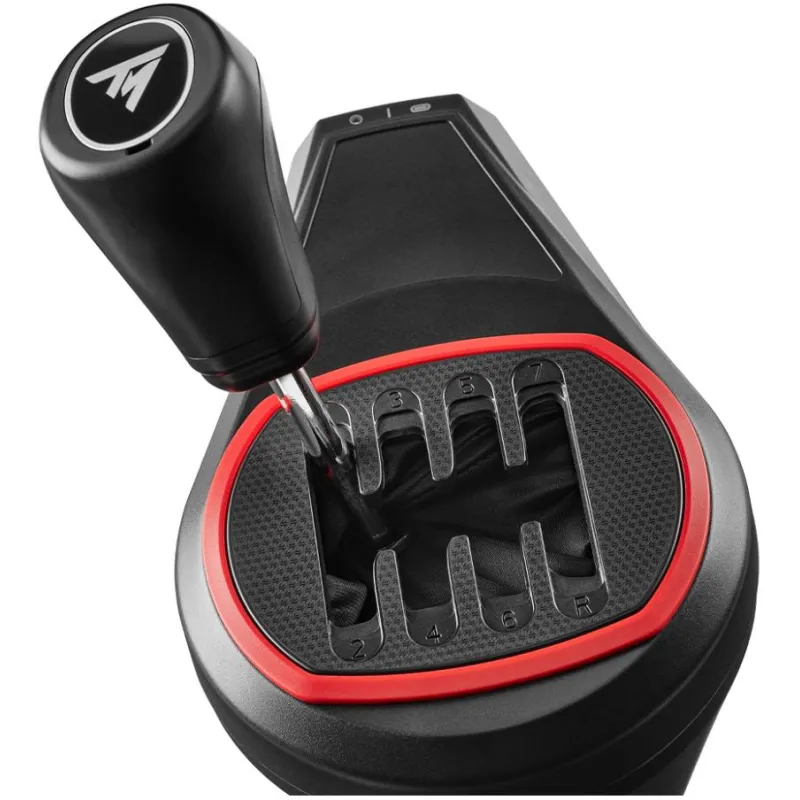 DISEÑO ESTÉTICO Y FUNCIONAL PARA UNA EXPERIENCIA INMERSIVA: La Palanca de Cambios Thrustmaster TH8S Shifter no solo destaca por su rendimiento, sino también por su atractivo color negro y rojo, que aporta un toque deportivo y moderno al entorno de juego. Su peso de 655 g y dimensiones equilibradas permiten una instalación sencilla en cualquier cockpit o soporte. El cable USB tipo A a USB tipo C incluido asegura una conexión fiable, mientras que la compatibilidad con Thrustmaster Force Feedback mejora la precisión y realismo de cada sesión. Es una elección acertada para quienes valoran tanto la estética como la funcionalidad en sus periféricos de simulación.