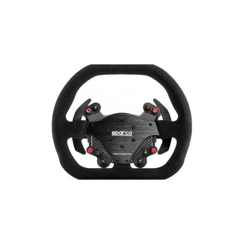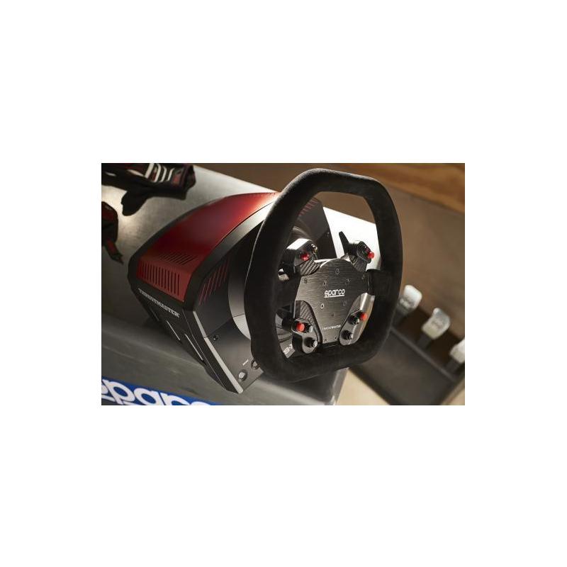 DISEÑO REALISTA DE VOLANTE DE "COMPETICIÓN": 12.4”/31.5 cm de diámetro: réplica a escala 1:1 del volante Sparco P310 Competition, con un diseño ergonómico perfectamente adaptado para todos los juegos de carreras (GT, F1, NASCAR, Indy, carreras de carretera, etc.). Base de servomotor TS-XW de Thrustmaster, volante Sparco desmontable con placa frontal de metal y cuero genuino de gamuza. LISTO PARA ECOSISTEMA. 2 grandes levas secuenciales montadas en el volante (5”/13 cm de altura – 100% metal – interruptor táctil con ciclo de vida superior a 500,000 activaciones). 14 botones de acción + 1 pad direccional con función de botón pulsador.