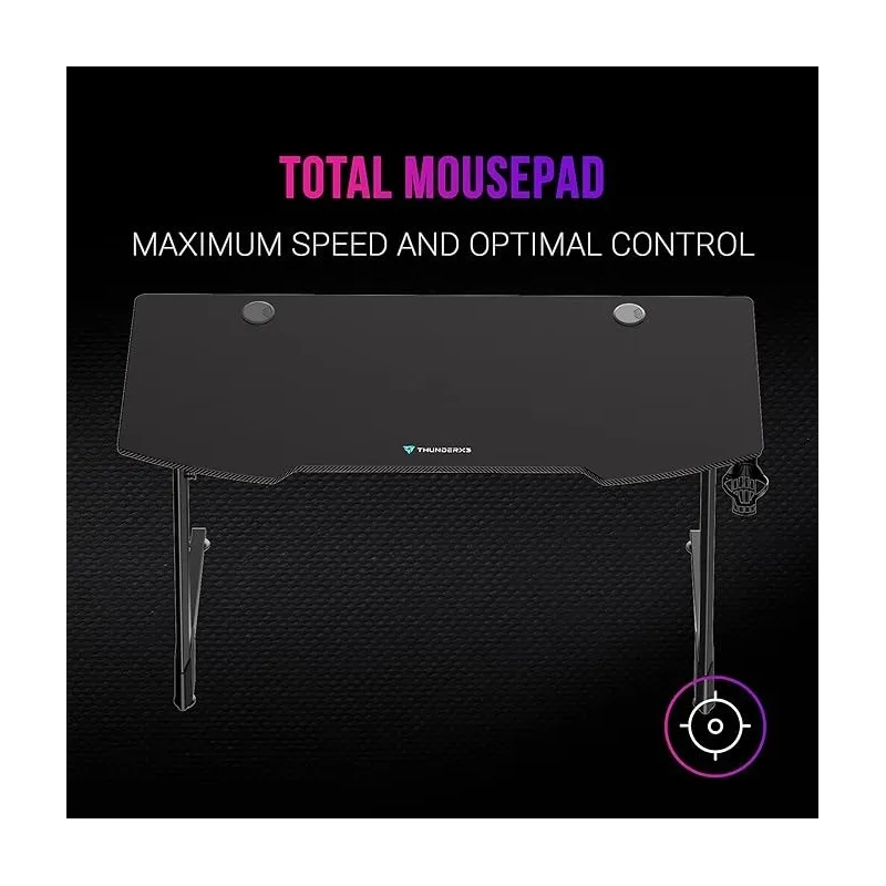 UNA SUPERFICIE QUE TE RESPALDA: Dotado de una superficie superior revestida con una alfombrilla de ratón de escritorio completo con un espesor de 2 mm, el ThunderX3 ED5 no solo te ofrece un espacio expansivo, sino que también garantiza un desplazamiento suave y preciso para tu ratón, esencial para tus movimientos tácticos.