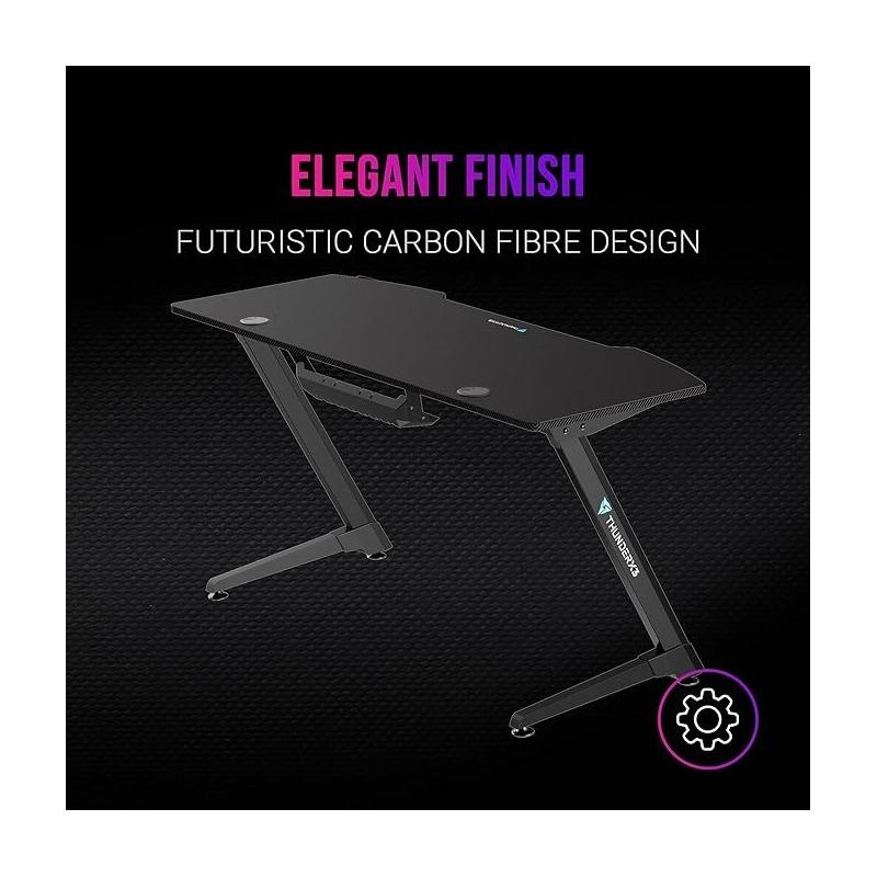 ACABADO ESTILO DE FIBRA DE CARBONO: Con un elegante acabado estilo fibra de carbono en la parte superior del escritorio, el ED5 ofrece una apariencia y sensación futuristas.+