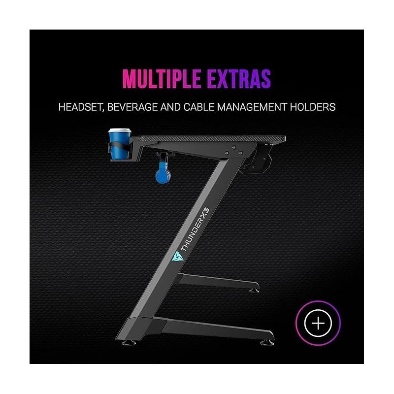 PORTA TAZAS BAJO MESA: Es importante mantenerse hidratado mientras juega, ¡especialmente si va a estar sentado durante horas y horas! El práctico portavasos ubicado debajo del lado derecho del escritorio permite un acceso rápido y fácil a sus bebidas.