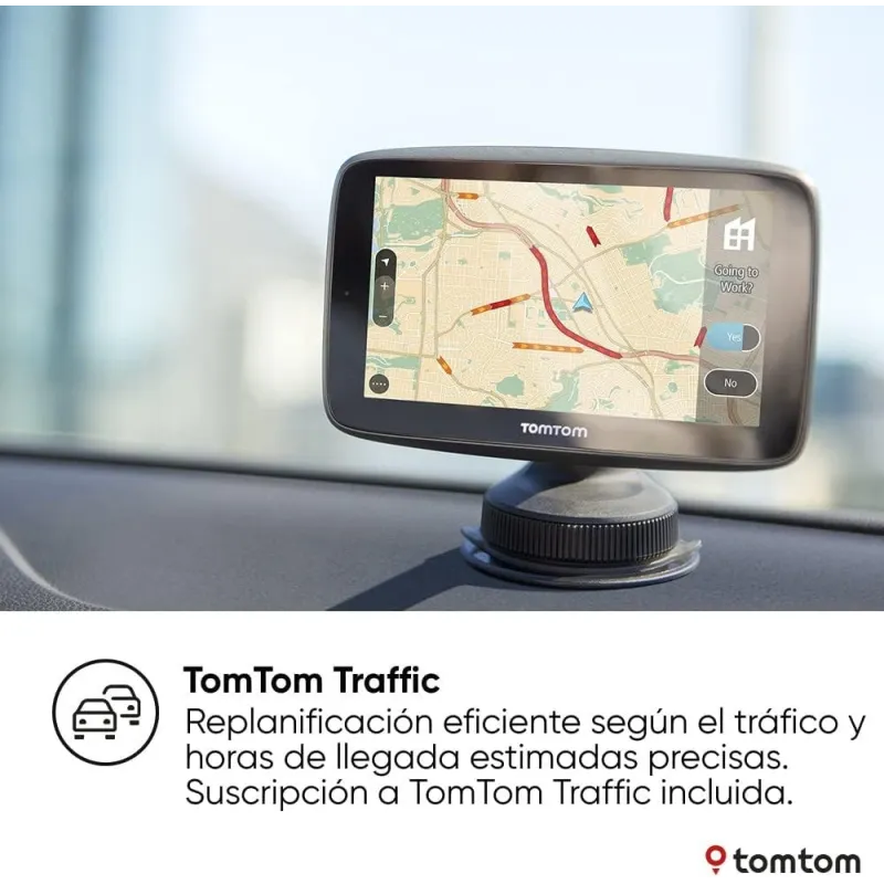 TOMTOM TRAFFIC: Recibe alertas detalladas sobre calles bloqueadas, accidentes y atascos, además de horas estimadas de llegada precisas. Suscripción a TomTom Traffic incluida sin coste adicional. Se requiere conexión de datos vía smartphone.