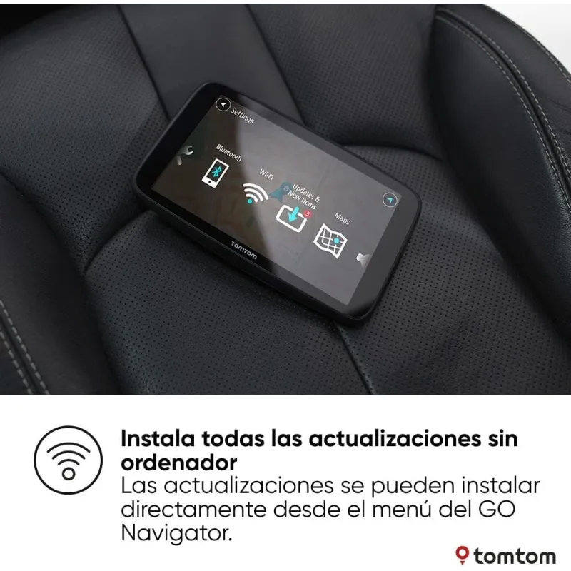 ACTUALIZACIONES MEDIANTE WI-FI MÁS FÁCILES: Asegúrate de que el mapa esté siempre actualizado. Para ello, conecta tu navegador TomTom GO a una red Wi-Fi. No es necesario ningún ordenador.