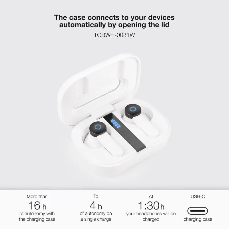 TooQ Bender TQBWH-0031W Auriculares Bluetooth con Estuche de Carga Blancos