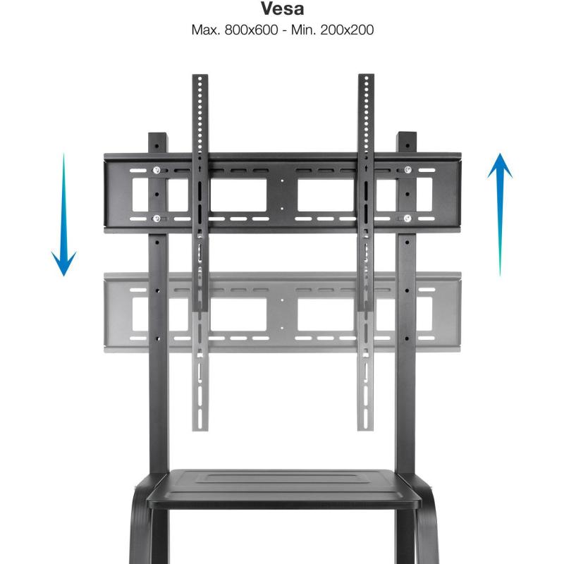 COLOSO SOPORTE DE SUELO CON RUEDAS PARA PANTALLA 37"-100" FS20101M-B: Nuestro fantástico Coloso ha nacido para sostener todo tu mundo audiovisual. Aguanta pantallas de hasta 150 kg y dispone de una bandeja multiusos para lo que quieras. El Coloso se puede mover con libertad gracias a sus ruedas y además cuenta con un sistema de bloqueo para inmovilizarlo totalmente si lo deseas.