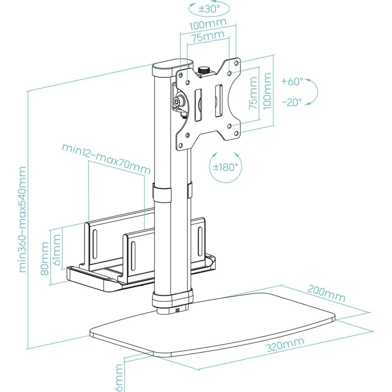 Soporte de Sobremesa para Monitor TooQ DB1128TN-B con ángulo de rotación 360°, ajuste de altura e inclinación y compatible con pantalla de hasta 27 pulgadas