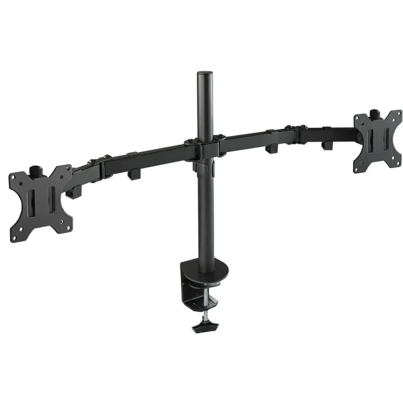 OPTIMIZA TU ESPACIO DE TRABAJO: Transforma tu entorno laboral en un lugar eficiente y ordenado. Este sistema de montaje es ideal para quienes buscan maximizar el espacio sin comprometer la funcionalidad. Soporta pantallas de hasta 81,3 cm (32") con facilidad, proporcionando una capacidad máxima de peso de 16 kg, adaptándose perfectamente a cualquier escritorio gracias a sus opciones de abrazadera o atornillado. Compatible con interfaces de montaje desde 75 x 75 mm hasta 100 x 100 mm, ofrece versatilidad y estabilidad, permitiendo configurar hasta dos pantallas simultáneamente para una experiencia visual incomparable.