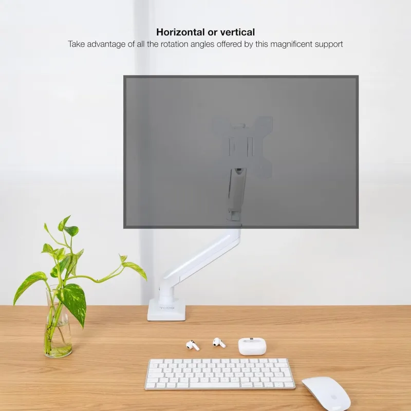 Este soporte incorpora un resorte de gas que permite un ajuste de altura suave y preciso, mejorando la postura y reduciendo la fatiga visual. Su sistema de gestión de cables mantiene el área de trabajo ordenada, mientras que su capacidad de rotación de 360° ofrece máxima flexibilidad para cambiar entre orientación horizontal y vertical. También permite inclinación entre -45° y 70° y un giro de -90° a 90°, facilitando el ángulo de visión perfecto en cualquier momento. Con una extensión de brazo de hasta 49 cm y una altura máxima del monitor de 44 cm, el Soporte Tooq DB1334TNR-W se adapta a múltiples configuraciones de trabajo. Su peso ligero de 1,92 kg y empaquetado compacto lo hacen fácil de transportar e instalar.