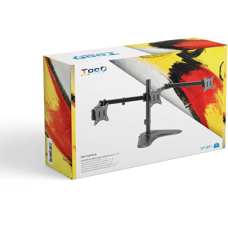 Soporte de Mesa TooQ DB1704TN-B para 3 Pantallas 17"-27" soportando Máx. 21Kg de peso, Negro