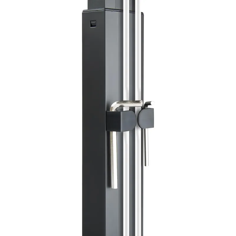 Fabricado con material de alta calidad como el aluminio y con un elegante color negro, no solo es funcional, sino que también añade un toque de sofisticación a tu espacio de trabajo. Sus dimensiones, con un ancho de 738 mm, una profundidad de 250 mm y una altura de 462 mm, aseguran que se adapte perfectamente a cualquier escritorio.