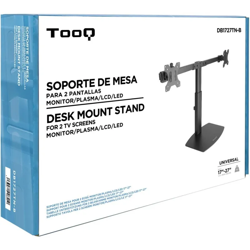 TooQ DB1727TN-B Soporte de Mesa de 2 Brazos Monitor/TV 17"-27" 6Kg por Brazo Negro