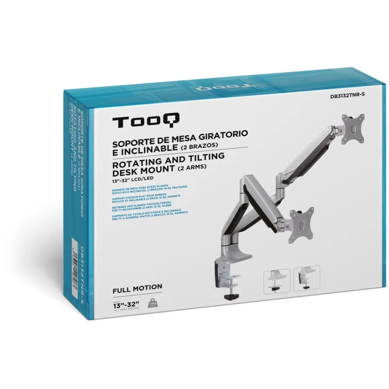 TooQ DB3132TNR-S Soporte Monitor Giratorio de 2 Brazos para Pantallas 13"-32" Máx. 18 Kg Gris