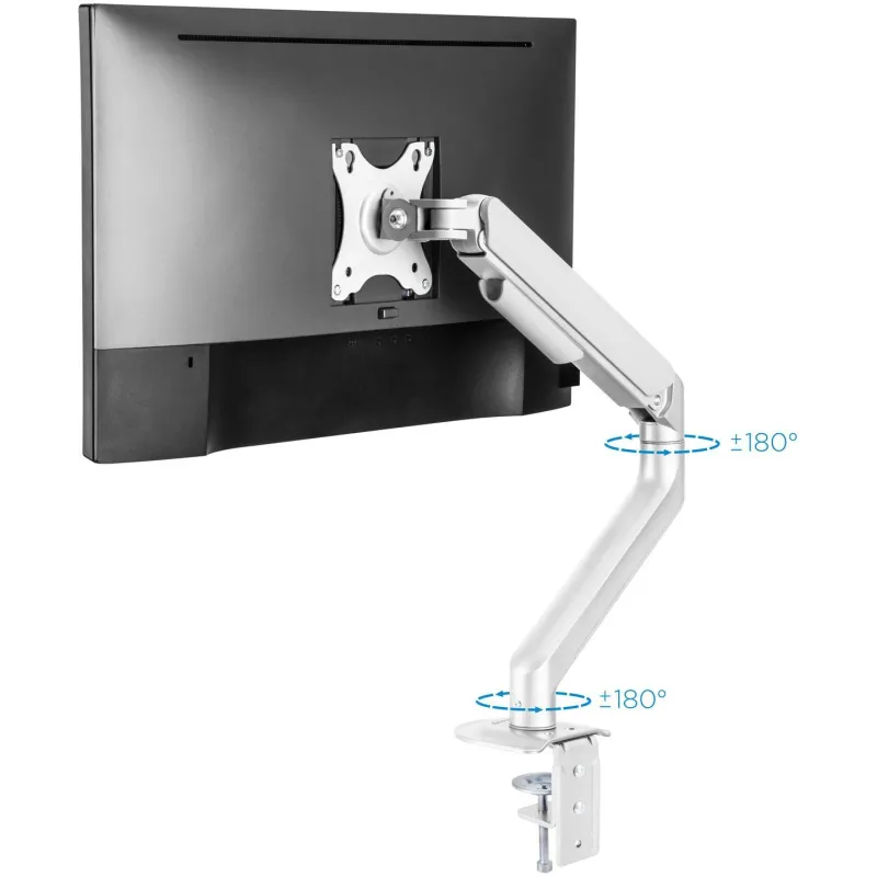 VERSATILIDAD QUE SE ADAPTA A TU ENTORNO: Compatible con interfaces de montaje de 75 x 75 mm y 100 x 100 mm, es extremadamente versátil y se adapta a una amplia variedad de monitores. La capacidad de extensión del brazo de hasta 51,6 cm permite un ajuste preciso, asegurando que tu monitor esté siempre en la posición perfecta. Además, la compatibilidad con escritorios de espesores desde 1 cm hasta 8 cm garantiza que se ajuste a prácticamente cualquier superficie de trabajo.