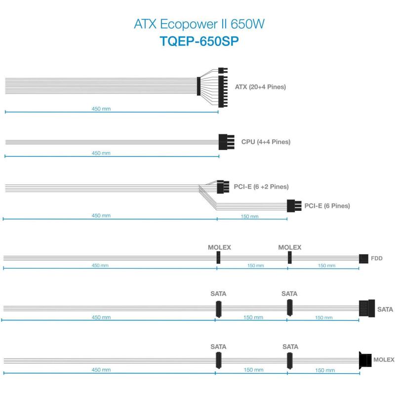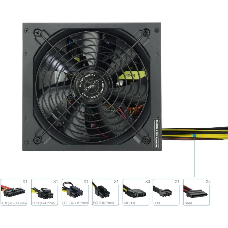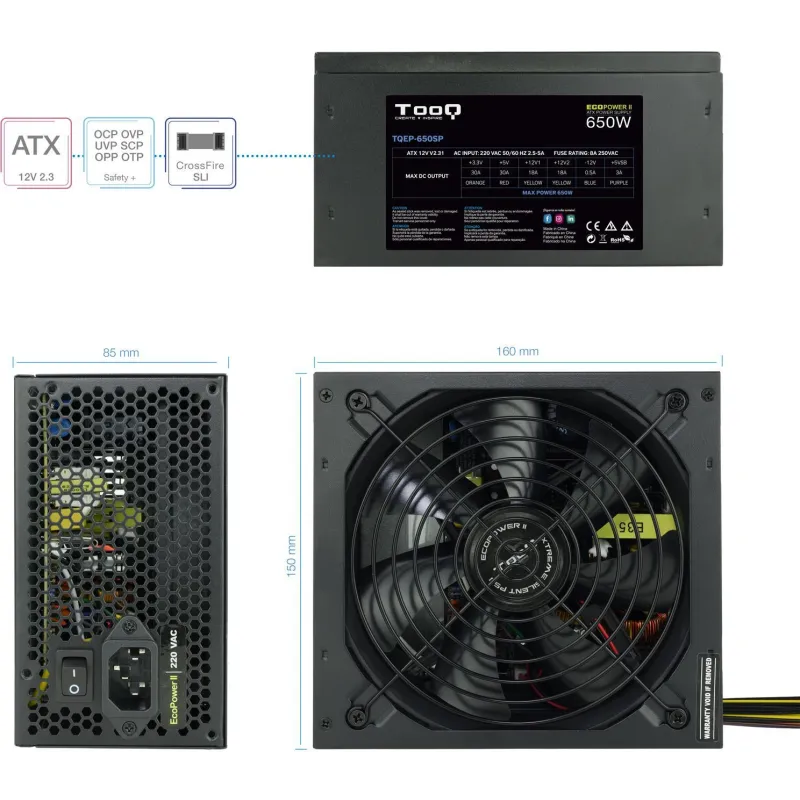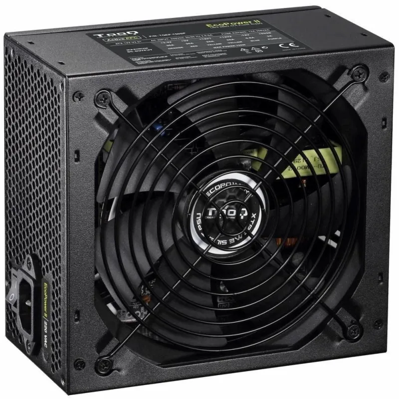 ECONOMÍA Y EFICIENCIA: Ecopower II es la nueva generación de las fuentes Ecopower de TOOQ. La nueva versión de fuentes incluye ACTIVE PFC (PFC ACTIVO, PF>0.99) de alta calidad, por lo que se garantiza al menos un 78% de eficiencia. Con la tecnología PFC Activo, la fuente produce mucho menos calor que una fuente con PFC Pasivo, con lo cual se puede prolongar la vida útil de la fuente. Además, la serie Ecopower II lleva ventilador súper silencioso de alta calidad, doble raíl +12V muy estable y protecciones del sistema electrónico de alta tecnología.