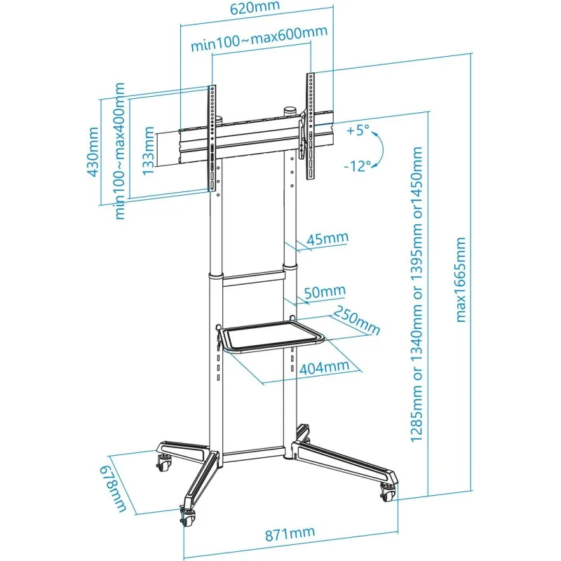 TooQ FS1170M-B Soporte de Suelo con Ruedas para Pantallas 37"-70" Máx. 50Kg Negro