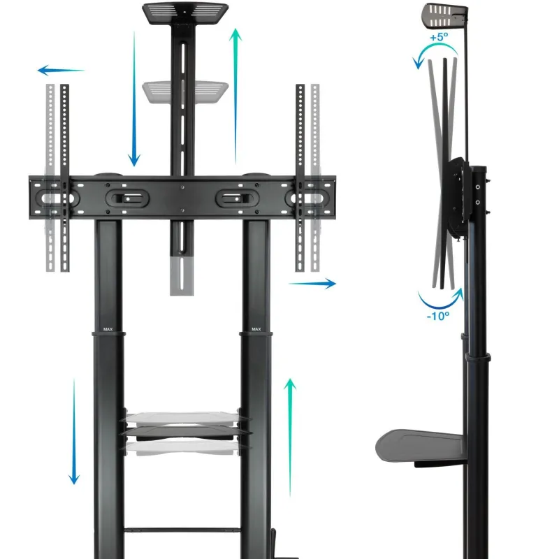 VIVE UNA EXPERIENCIA AUDIOVISUAL INCREÍBLE: Con dos bandejas tiene todo lo que necesitas para sacarle el máximo partido a tu pantalla. Tiene una bandeja inferior para colocar tu reproductor o DVD y una bandeja superior regulable para poner tu webcam. Así podrás reproducir tus películas, series o juegos favoritos y hacer videollamadas con una calidad de imagen y sonido espectaculares. Además, tiene un peso máximo soportado de pantalla de 100 kg, por lo que no tendrás que preocuparte por la seguridad de tu pantalla.