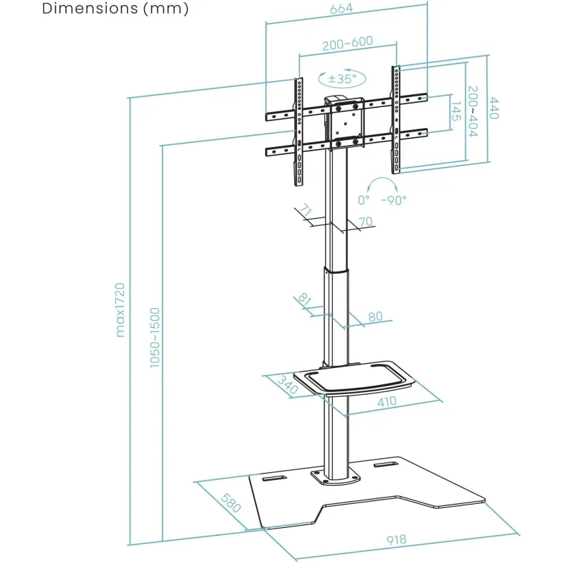 Gracias a su sistema ergonómico, el Soporte Tooq FS2284M-B MINOS permite un ajuste manual de altura entre 1050 mm y 1500 mm, adaptándose a diferentes necesidades de visualización. Además, incorpora funciones de rotación de 90° y giro de hasta 70°, lo que facilita una experiencia visual óptima desde distintos ángulos. También incluye gestión de cables, lo que contribuye a un entorno más limpio y organizado. Su capacidad de soportar una pantalla de gran tamaño junto con su ángulo de rotación de 90° lo convierten en una opción perfecta para presentaciones, videoconferencias o entretenimiento en casa. Este soporte combina tecnología, resistencia y estética en un único producto funcional y fiable.