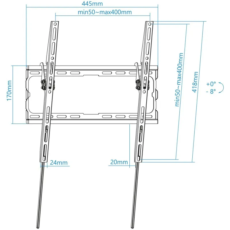 AJUSTE ERGONÓMICO PARA UNA MEJOR VISUALIZACIÓN: Con un ángulo de inclinación ajustable de -8° a 0°, permite optimizar el ángulo de visión para reducir el cansancio ocular y mejorar la comodidad durante largos periodos de uso. La distancia mínima a la pared de 2 cm proporciona una apariencia limpia y elegante, permitiendo que tu pantalla se integre perfectamente en cualquier entorno.
