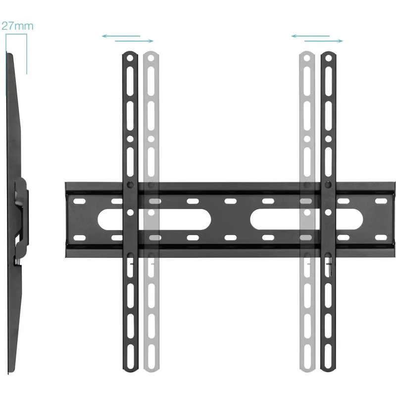 Si buscas un soporte fijo de pared para colgar una TV y dejarla visualmente integrada, este modelo cumple con lo esencial: acero, acabado negro, compatibilidad VESA amplia y un montaje pensado para quedar discreto. Es una elección cómoda cuando la pantalla va a estar siempre “de frente” y no necesitas ajustes.