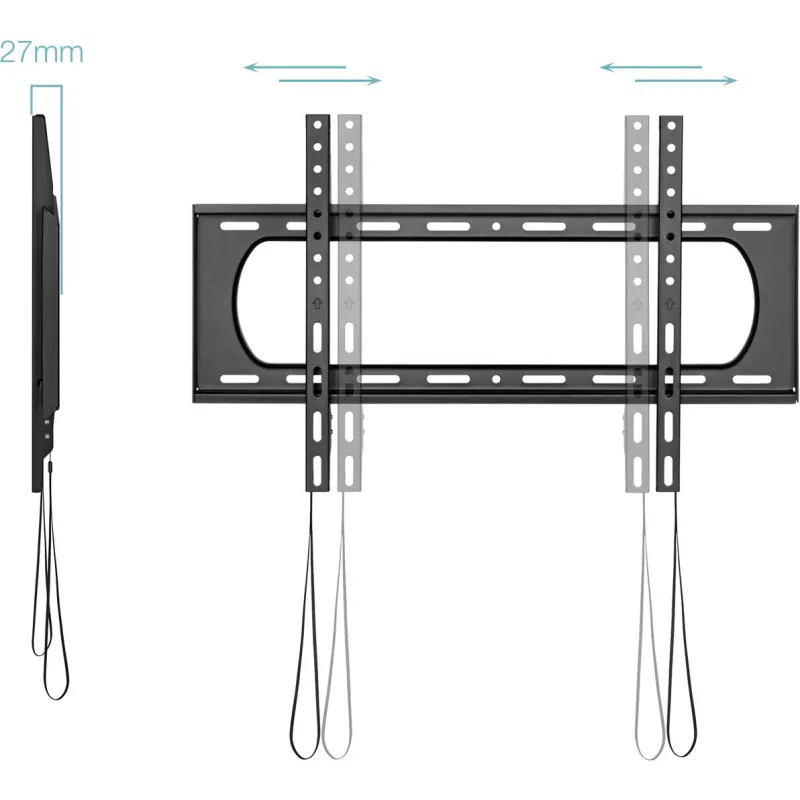 Este soporte fijo de pared está pensado para colgar una TV y dejarla muy pegada, sin complicarte con brazos ni ajustes. Se nota en el día a día: la pared queda limpia y la pantalla “desaparece” visualmente.