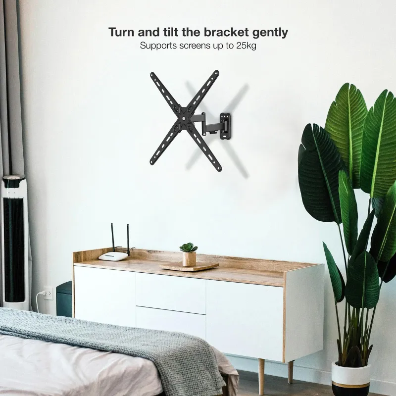 TooQ LP1356TN-B Soporte de Pared Inclinable entre -15 y 5º y Giratorio -60 y 60º, para Pantallas de entre 13" y 55" que aguanta hasta 25Kg, color Negro