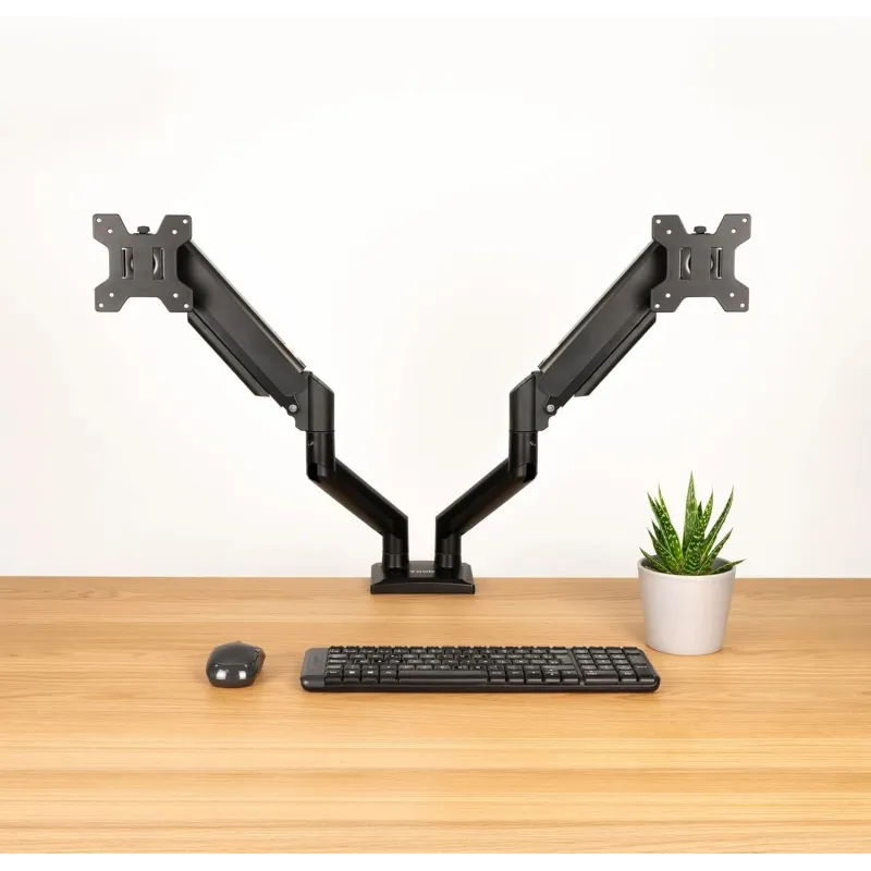 Soporte de Pared Tooq LP1434TNR-B con resorte de gas, rotación de 360°, ajuste de altura y capacidad para dos pantallas de hasta 34 pulgadas