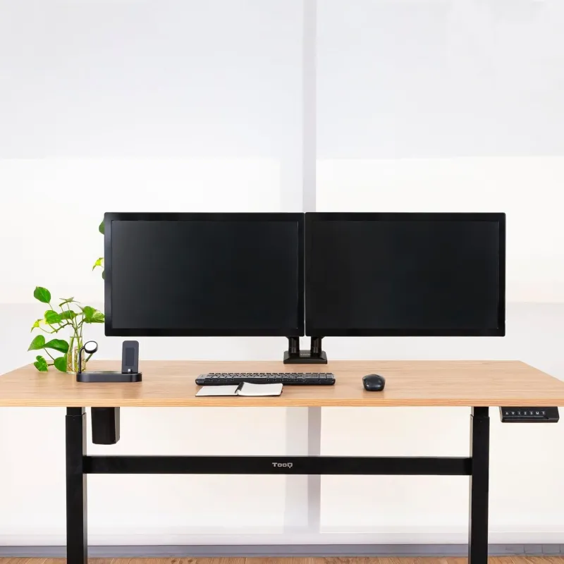 El Soporte Tooq LP1434TNR-B es compatible con monitores de entre 13 y 34 pulgadas, soportando hasta 10 kg en total. Su estructura permite montar dos pantallas de forma segura y firme, gracias al sistema de pinza o atornillado que se adapta a diferentes tipos de escritorios. La compatibilidad con los estándares VESA 75 x 75 mm y 100 x 100 mm garantiza una instalación universal con la mayoría de monitores del mercado. Su diseño en color blanco aporta un toque moderno y profesional al espacio de trabajo. Además, incluye gestión de cables para mantener el escritorio limpio y ordenado. Este soporte ofrece una solución completa para quienes buscan funcionalidad, estética y facilidad de montaje en un solo producto. Su ángulo de rotación 360° añade una capa adicional de versatilidad para usuarios exigentes.