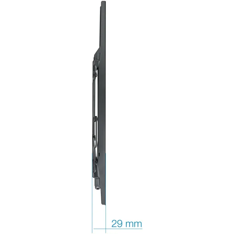 Su diseño incluye un nivel integrado, facilitando una instalación precisa. Además, permite mantener la pantalla a solo 2,9 cm de la pared, lo que proporciona una apariencia elegante y discreta. Su acabado en color negro se integra fácilmente con cualquier entorno.