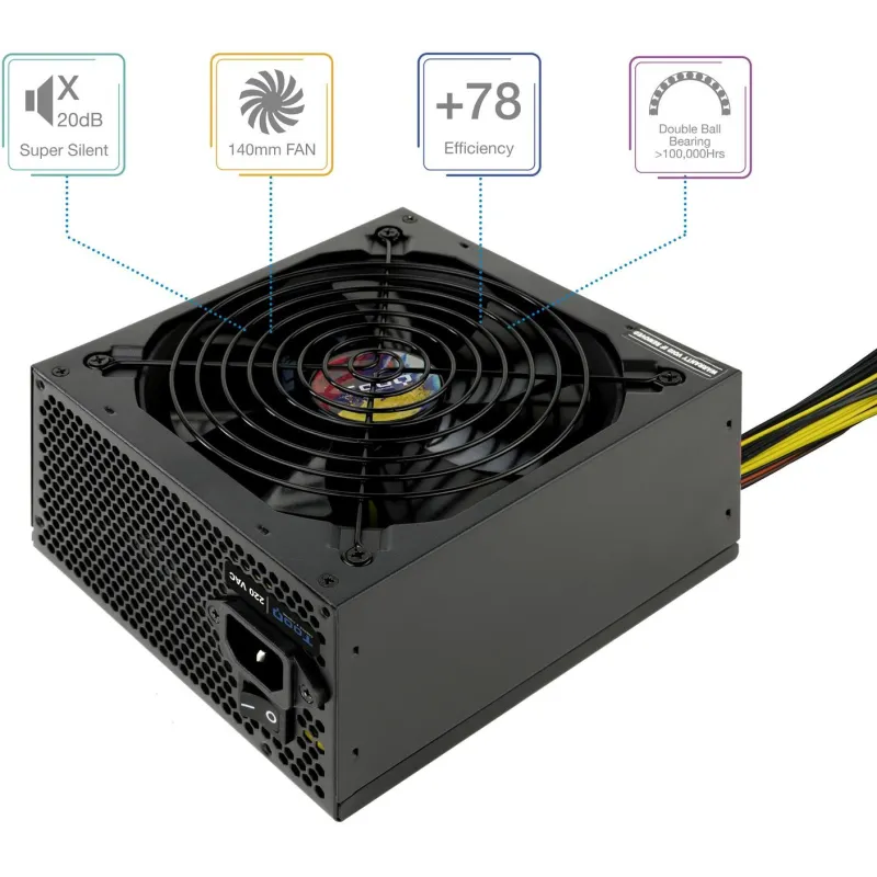 RENDIMIENTO CONSTANTE: Aunque no cuenta con la certificación 80 PLUS, su compatibilidad con factores de forma ATX y la versión 2.3 de ATX lo hacen ideal para su uso en PC. Con un tiempo medio entre fallos de 10,000 horas, se garantiza un rendimiento constante y duradero.