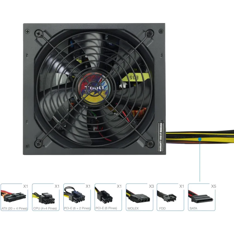 Equipada con múltiples funciones de protección de poder, como sobreintensidad, sobretensión, sobrevoltaje, sobrecalentamiento, cortocircuito y bajo voltaje, garantiza la seguridad y durabilidad de tus componentes. Su diseño incluye un ventilador de 14 cm para un enfriamiento activo eficaz y un interruptor de encendido/apagado integrado para mayor comodidad.
