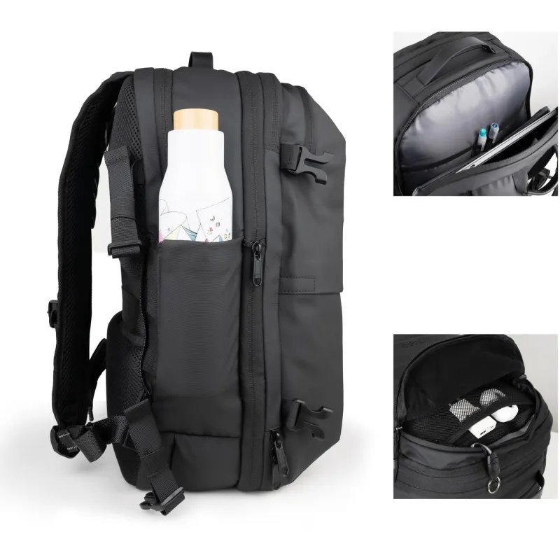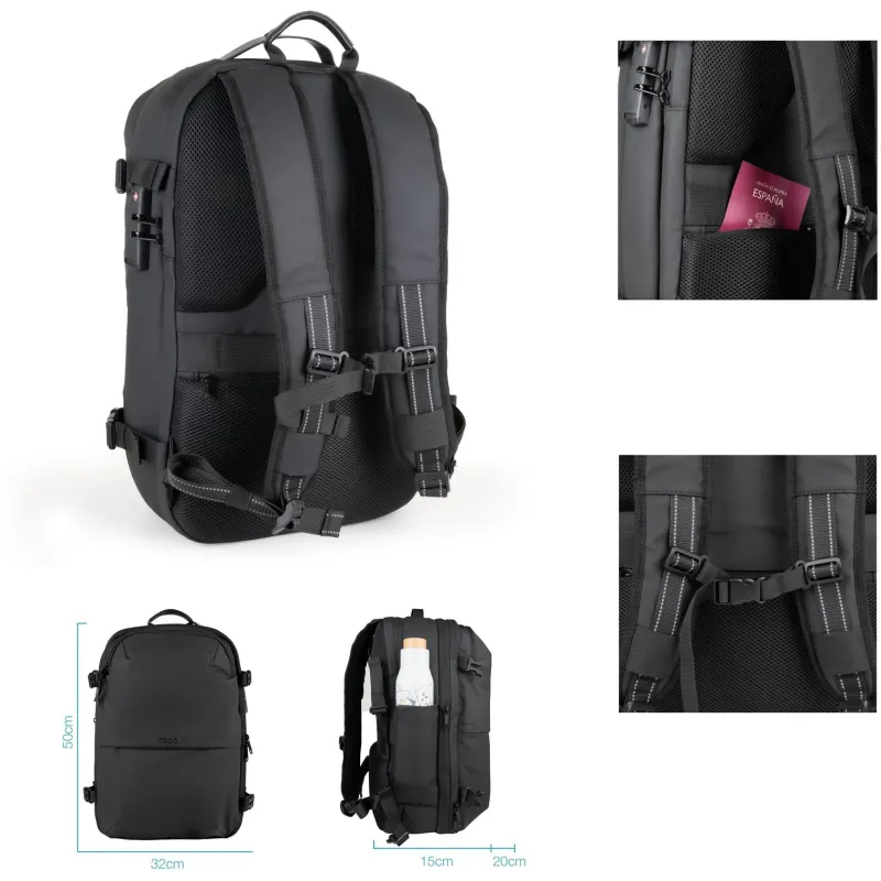 Para cubrir búsquedas concretas sin vueltas: esta es una mochila de viaje TooQ con bomba eléctrica, pensada para compactar ropa; y también una mochila de viaje resistente al agua para lluvia ligera. Si priorizas seguridad en transporte público, aquí tienes una mochila de viaje con candado antirrobo y una mochila de viaje con bolsillo antirrobo trasero.