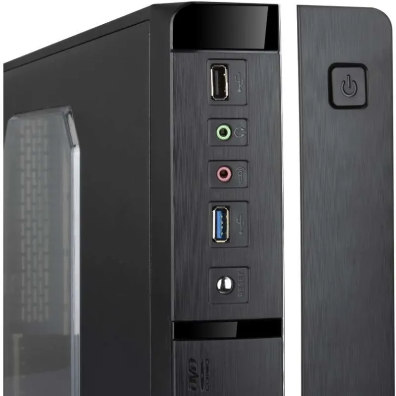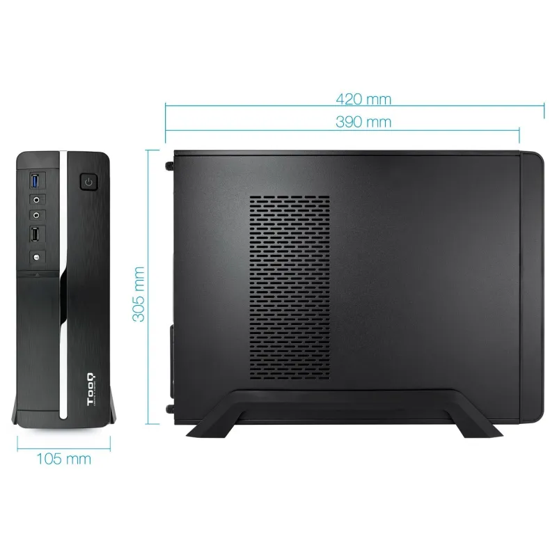 Caja Micro ATX SLIM USB 3.0 con fuente de alimentación. La caja ofrece un diseño compacto para sistemas y soluciones mini-ITX para un mayor ahorro de espacio tanto en oficina como en sistemas multimedia en el salón de casa. Sistema de pasacables incorporado para organizar los cables y mejorar el flujo de aire. Además, el montaje de equipo con esta caja es tan sencillo que se puede completar en menos de 15 minutos.
