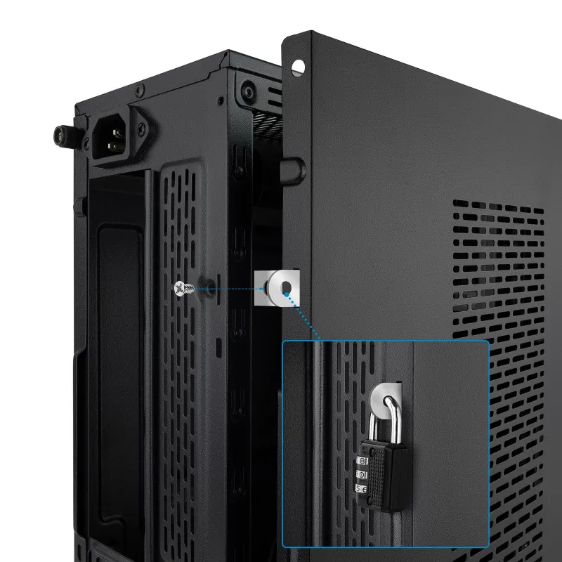 Incluye una fuente de alimentación de 500 W ubicada en la parte frontal, compatible con factores de forma SFX y equipada con un conector de poder ATX (20 + 4 pin). Esto asegura una potencia suficiente para soportar componentes de alto rendimiento y mantener un funcionamiento estable.