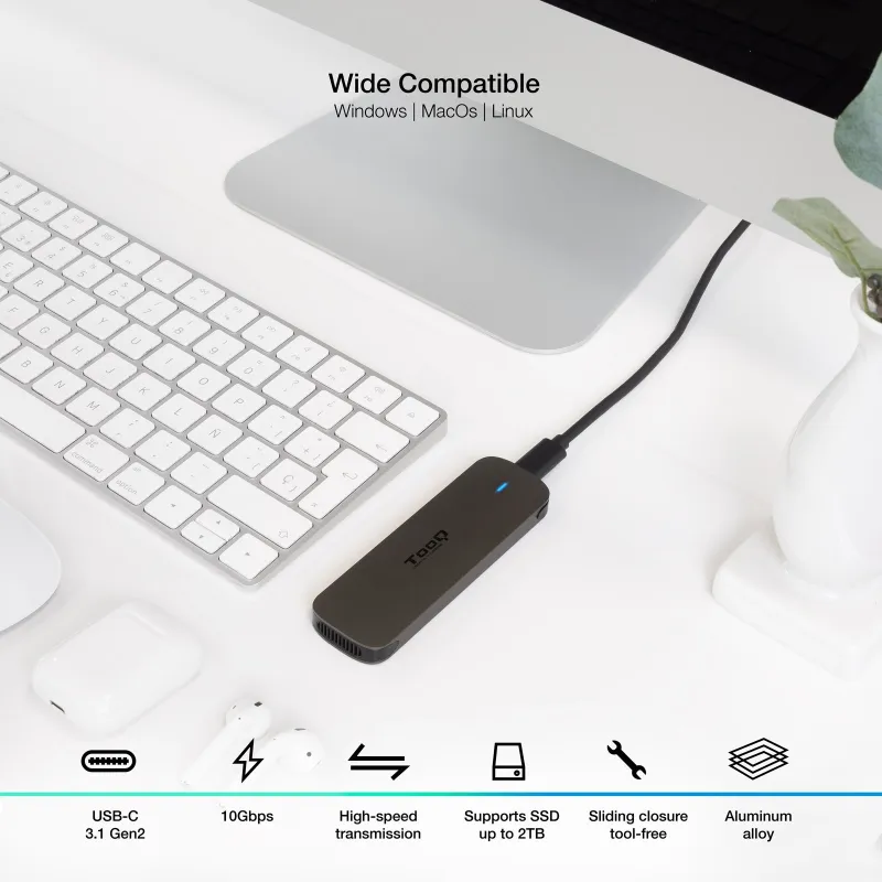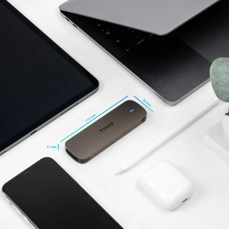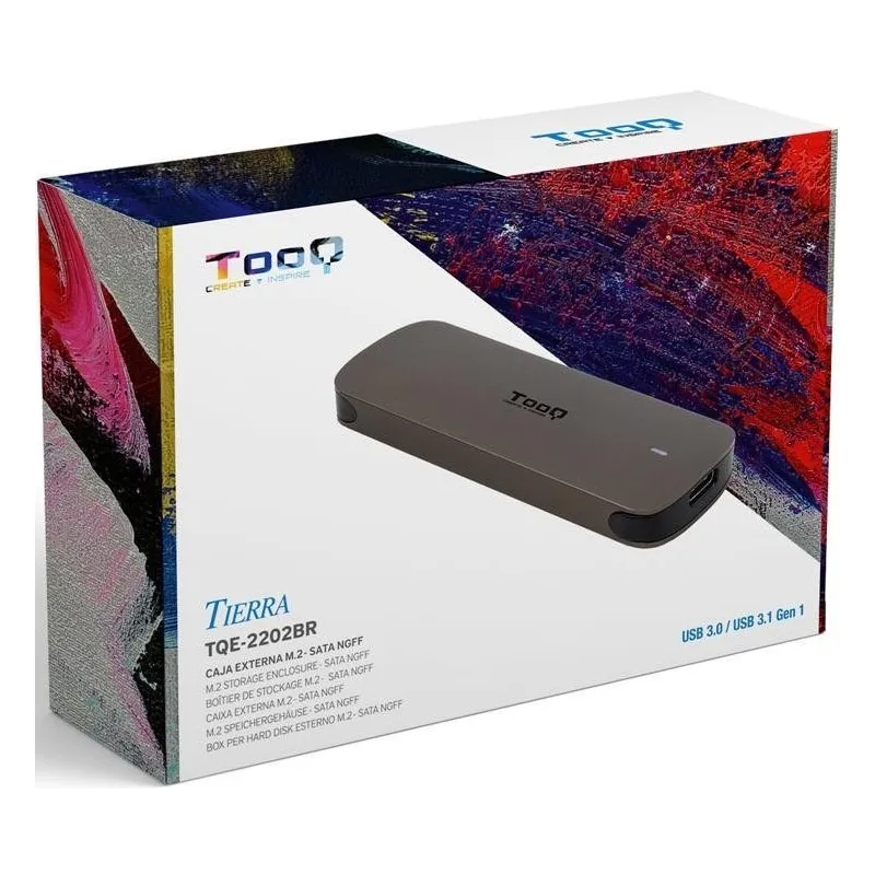 CAJA EXTERNA M.2 - NGFF TQE-2202BR: Desata todo tu poder con nuestras cajas M.2 compatibles con NGFF. Experimentarás una velocidad de transferencia de vértigo, pasarás tus datos en un visto y no visto. Disponible en colores tierra y gris. Además incluyen dos cables con conexión USB-A y USB-C.