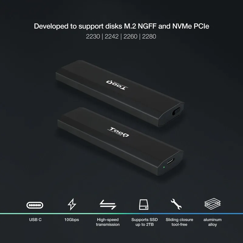 TooQ TQE-2223B Caja Externa M.2 PCIe a USB-C 3.1 Negro