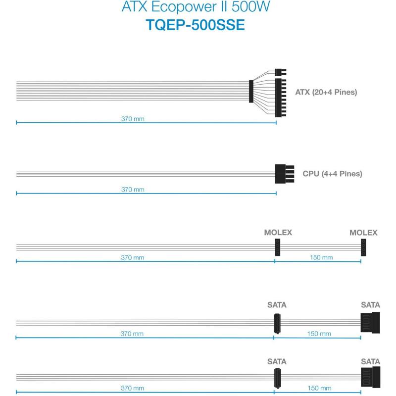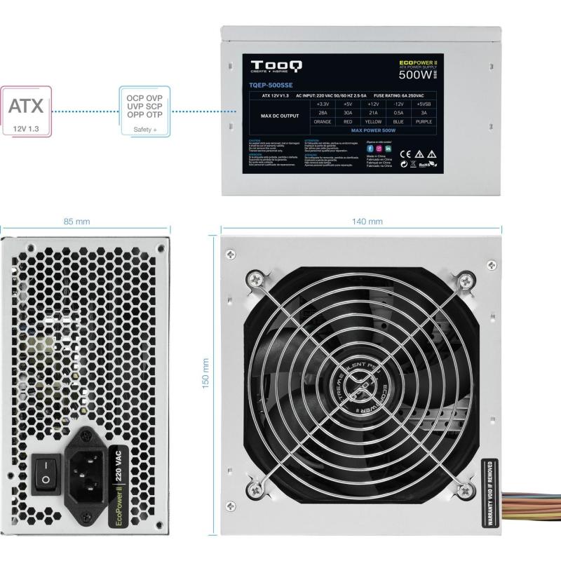Fuente de Alimentación TooQ TQEP-500SSE de 500 W de Potencia, formato ATX, 2 conectores Molex y 4 SATA