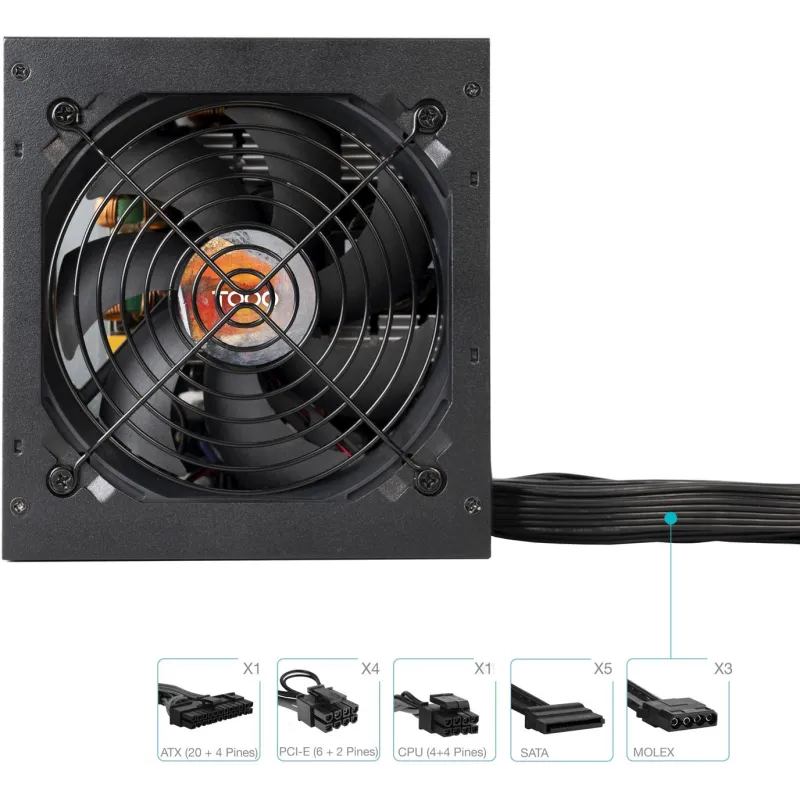Fuente de Alimentación Tooq ATX 750W APFC 80Plus Bronze con certificación 80 PLUS Bronze, conectores PCI Express 6+2 pines y PFC activo