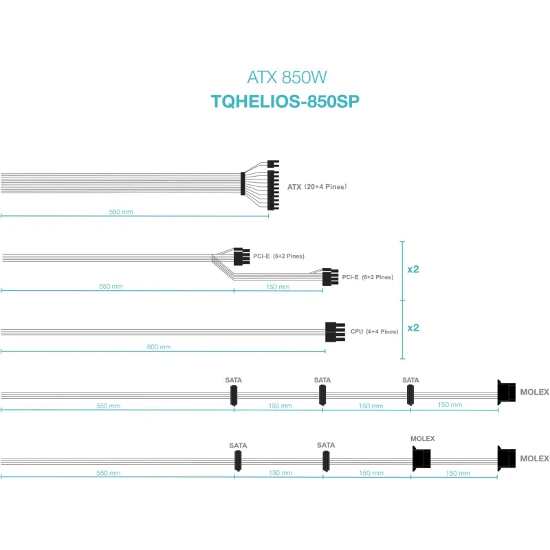 - Longitud del cable de alimentación SATA: 550,700,850,1000 mm