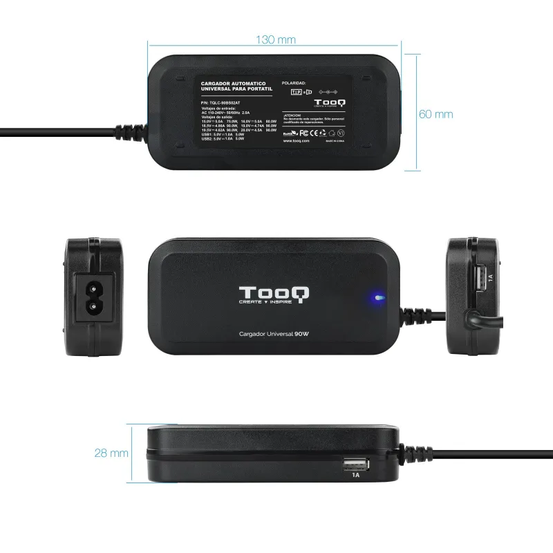 TooQ TQLC-90BS02AT Cargador para Portátil Universal 90W Negro