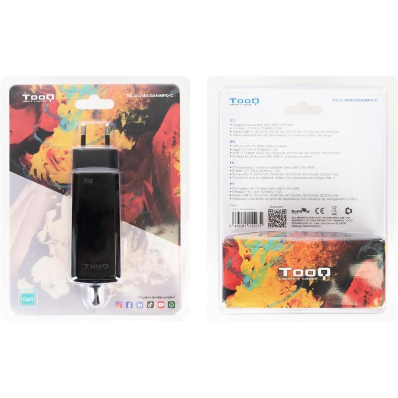 TooQ TQLC-USBCGAN90PD-C Cargador para Portátil 90W USB-C Negro