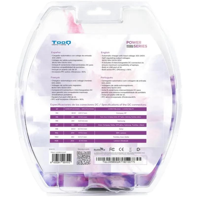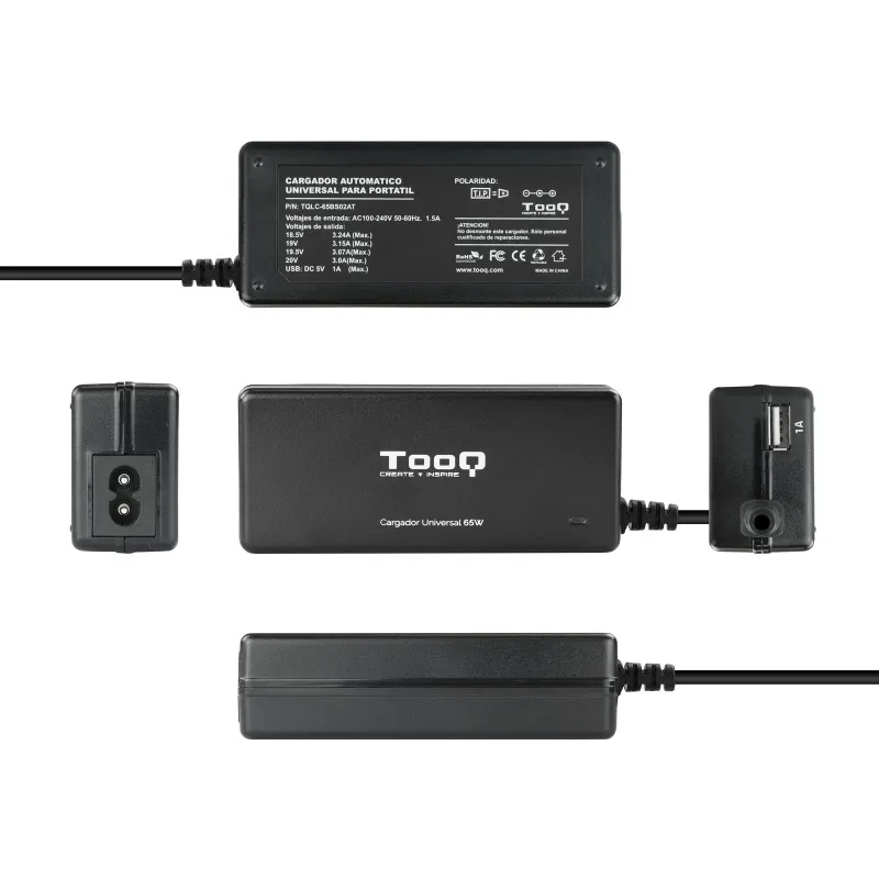 TooQ TQLC65BS02AT Cargador Universal para Portátil 65 W Negro